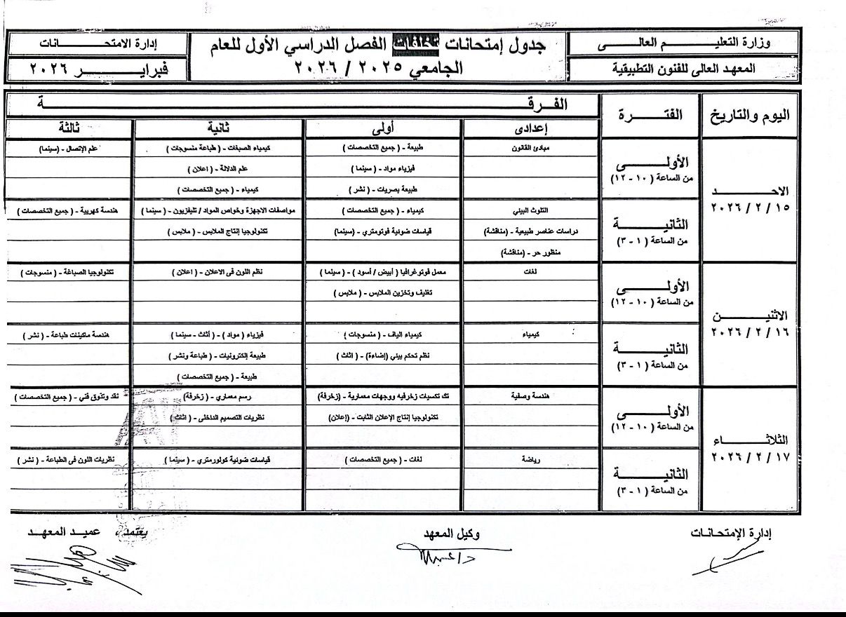 جدول امتحانات التخلفات الفصل الدراسي الاول للعام الجامعي 2026/2025